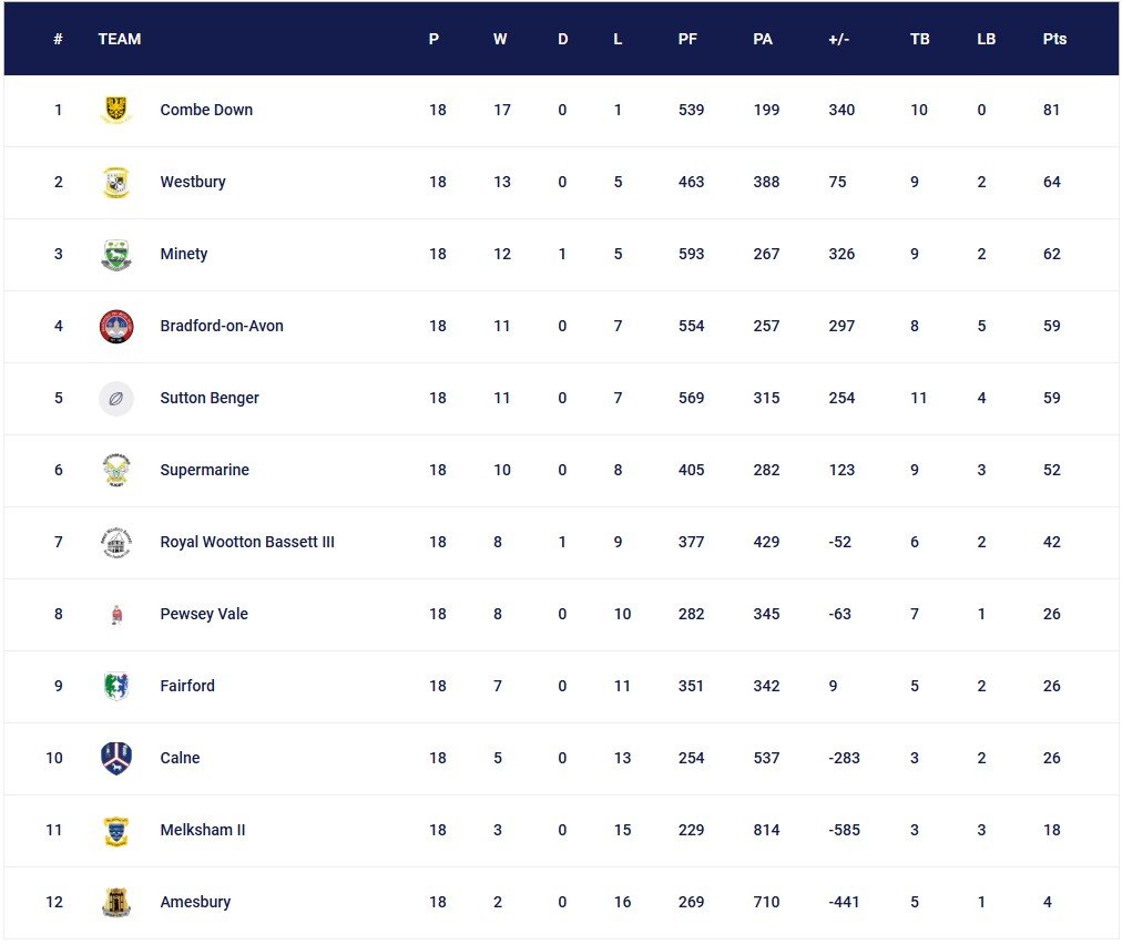 Counties 2 Tribute ale Dorset & Wilts North Fixtures Results League Table Match Reports League Table 2025/2026